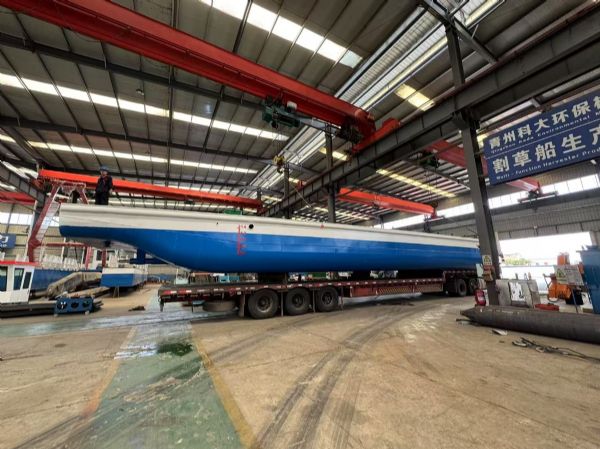 大型駁船運(yùn)輸船發(fā)貨至剛果金,該船體尺寸:50*10*2.3m 裝載量:350t 雙柴油機(jī)雙螺旋槳驅(qū)動(dòng)