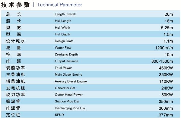 絞吸式挖泥船: 是在疏灘工程中運(yùn)用較廣泛的一種船舶,它是利用吸水管前端圍繞吸水管裝設(shè)旋轉(zhuǎn)絞頭裝置,將河底泥沙進(jìn)行切割和攪動(dòng),再經(jīng)吸泥管將絞起的泥沙物料,借助強(qiáng)大的泵力,輸送到泥沙物料堆積場,它的挖泥、運(yùn)泥、卸泥等工作過程,可以一次連續(xù)完成,它是一種效率高、成本較低的挖泥船,是良好的水下挖掘機(jī)械。